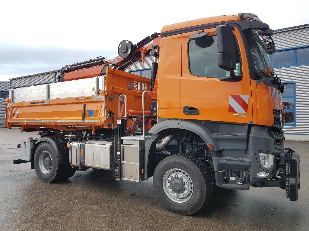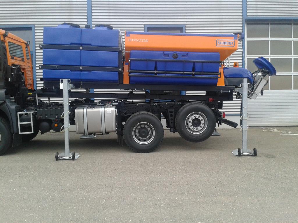 - Der Aufbau wird in Front mit 2 Hydraulikzylinder ausgehoben