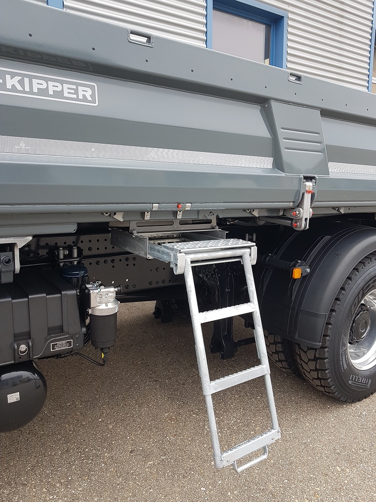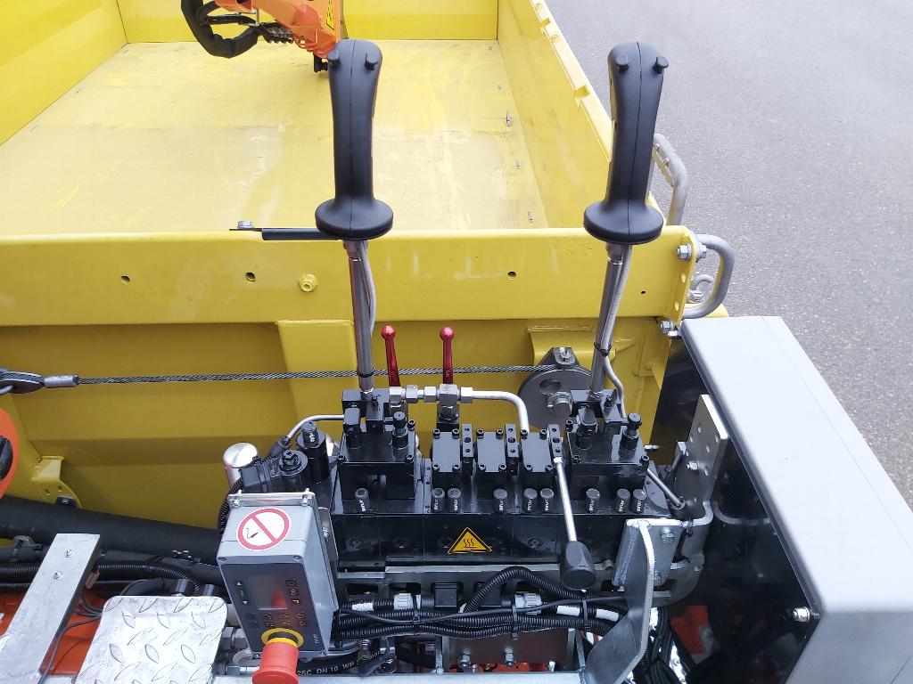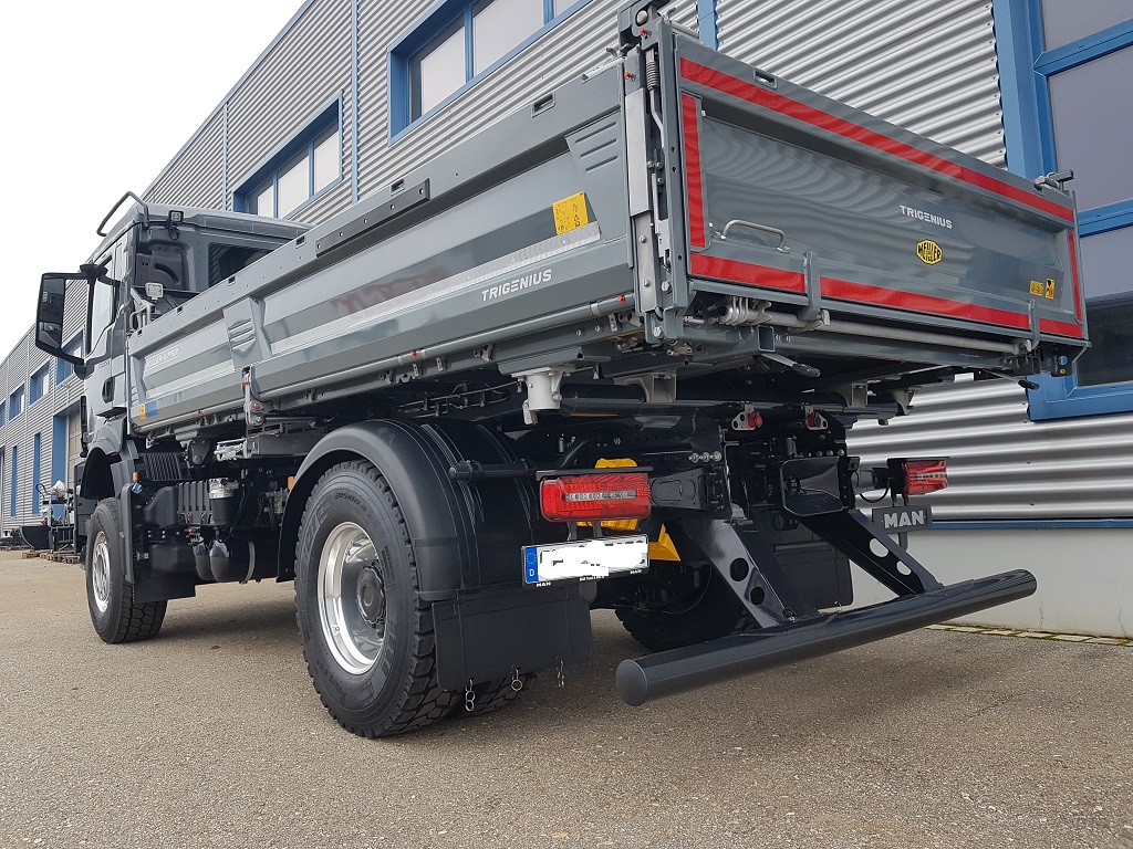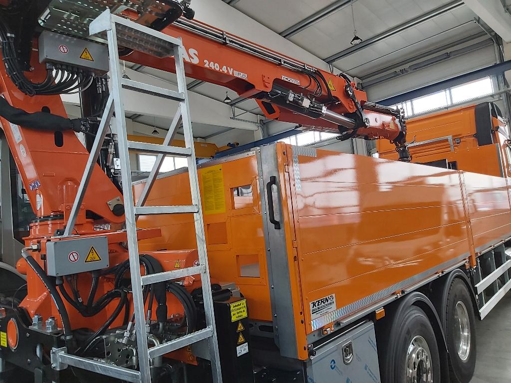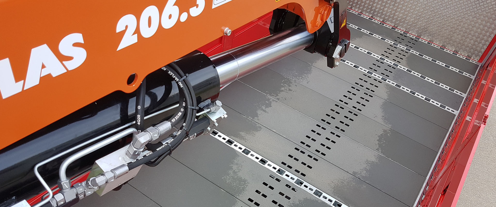 - Vier Gleichlaufzylinder heben den Aufbau